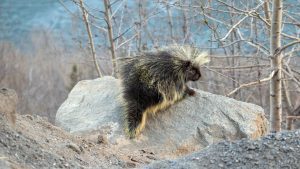 Porcupines are mostly nocturnal and have a diet consisting largely of leaves, herbs, twigs, and green plants. In the winter, they may chew on bark. They are found in various habitats, including forests, deserts, and grasslands. Their need for substantial vegetation influences their habitat choices, often leading them to inhabit areas where they can cause damage to trees and other vegetation, creating conflicts with human activities.